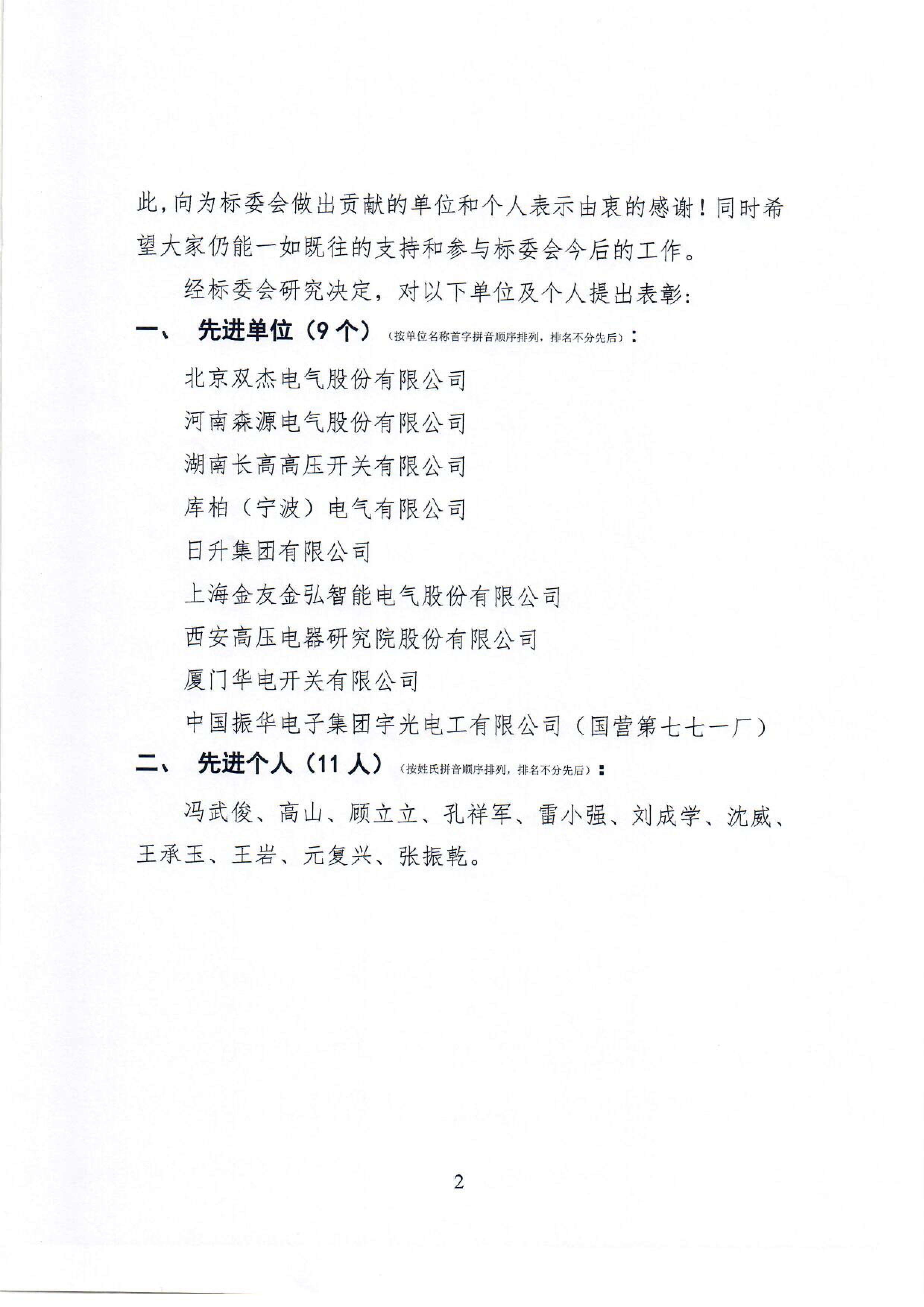厦门华电荣获高压开关标委会先进单位表彰
